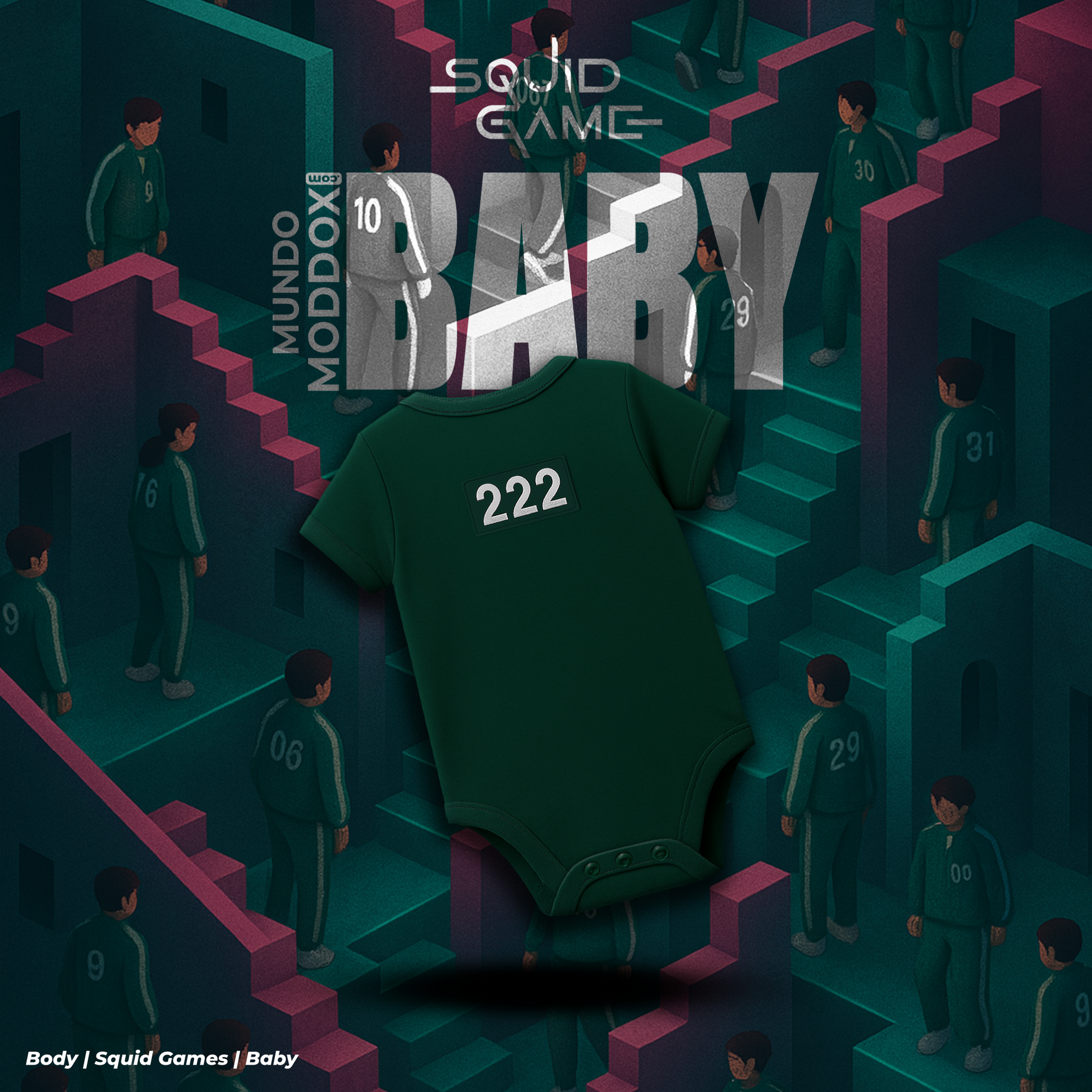 ¡Dale un giro de adrenalina al guardarropa de tu peque! 👶🔫 Este body de algodón ultra suave está inspirado en la icónica estética de Squid Game y luce el emblemático número 222 en el pecho. Con broches de presión en la entrepierna para cambios rápidos y un corte unisex, ofrece comodidad y estilo en cada ronda de ternura. Ideal para bebés aventureros que quieren conquistar el primer juego de la vida. 🧩✨