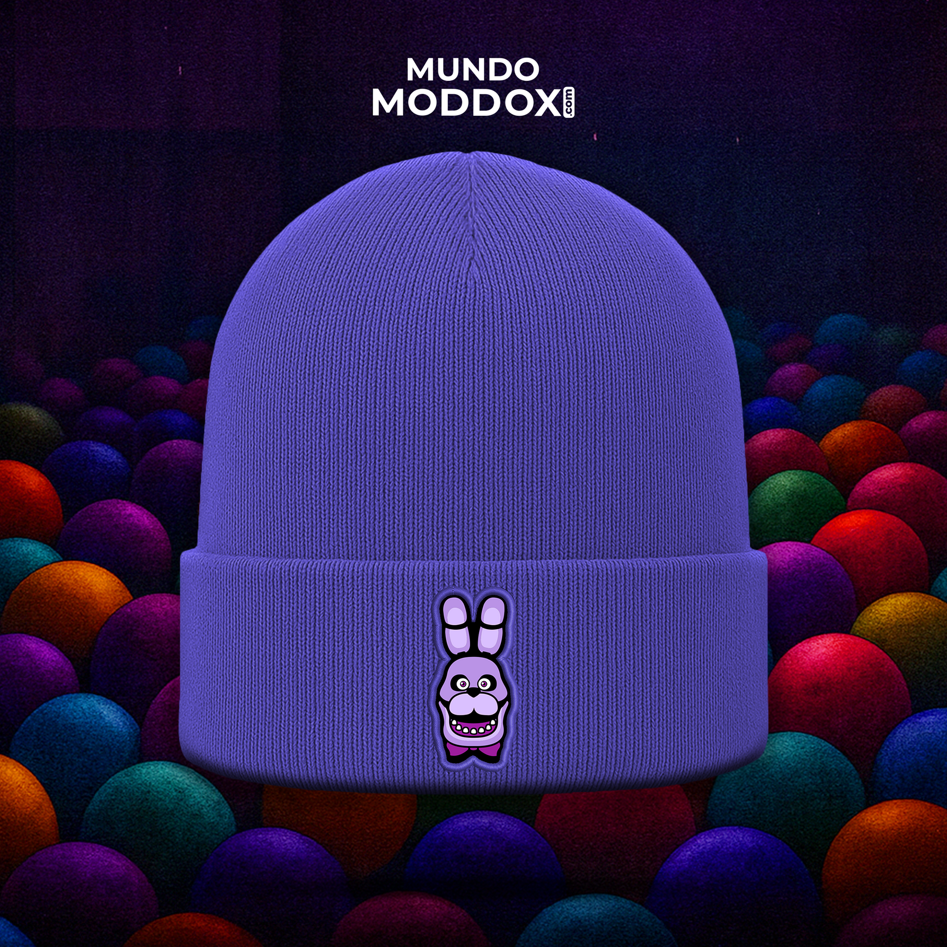 Gorro morado con parche de Bonnie, listo para acompañarte en cada partida 🎸💜 Diseño sencillo, reconocible y perfecto para combinar con outfits casuales mientras demuestras tu amor por FNAF.