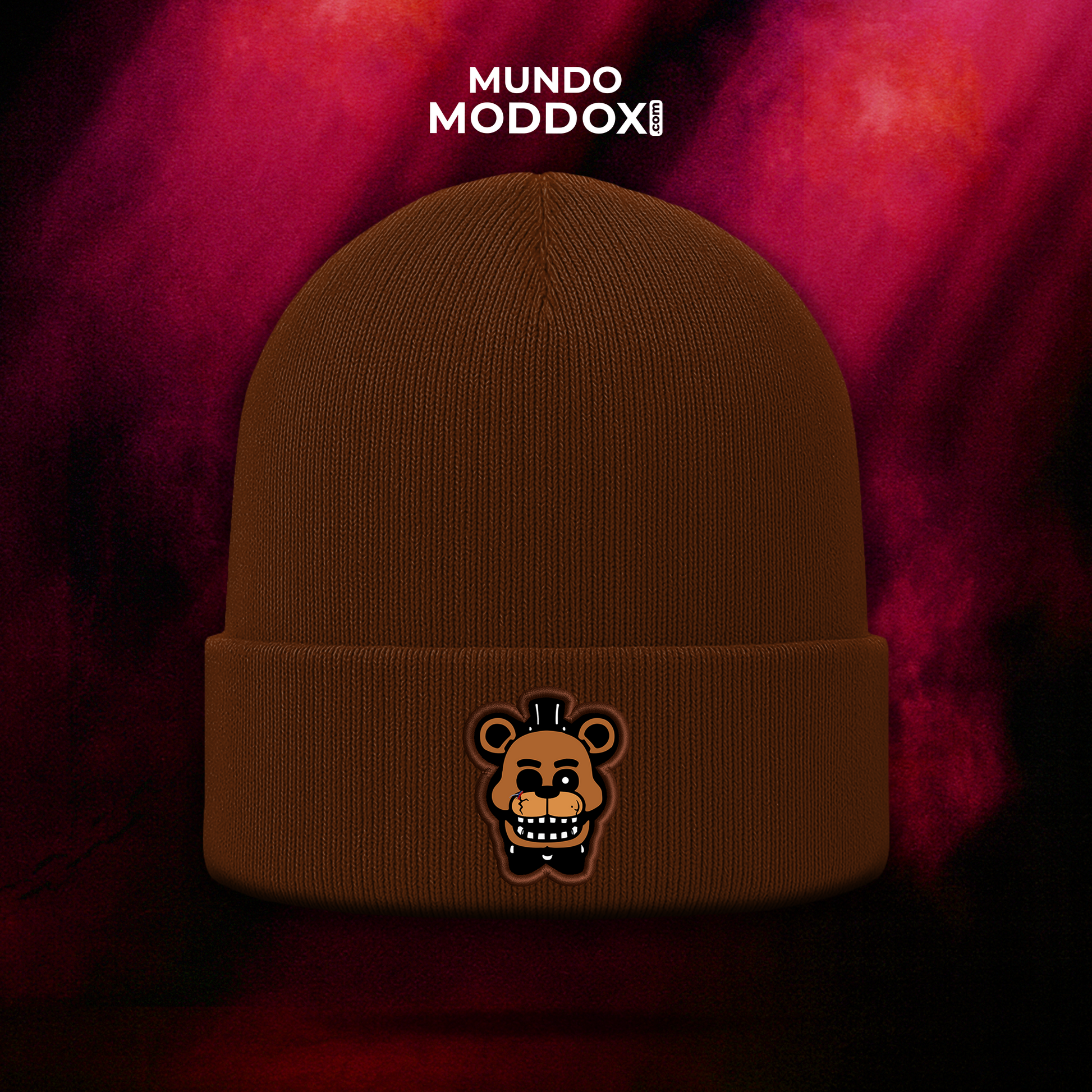 Freddy destrozado, pero más icónico que nunca 😵🧸 Gorro café con parche de Withered Freddy, ideal para fans que conocen todo el lore y quieren llevar un detalle oscuro pero sutil.
