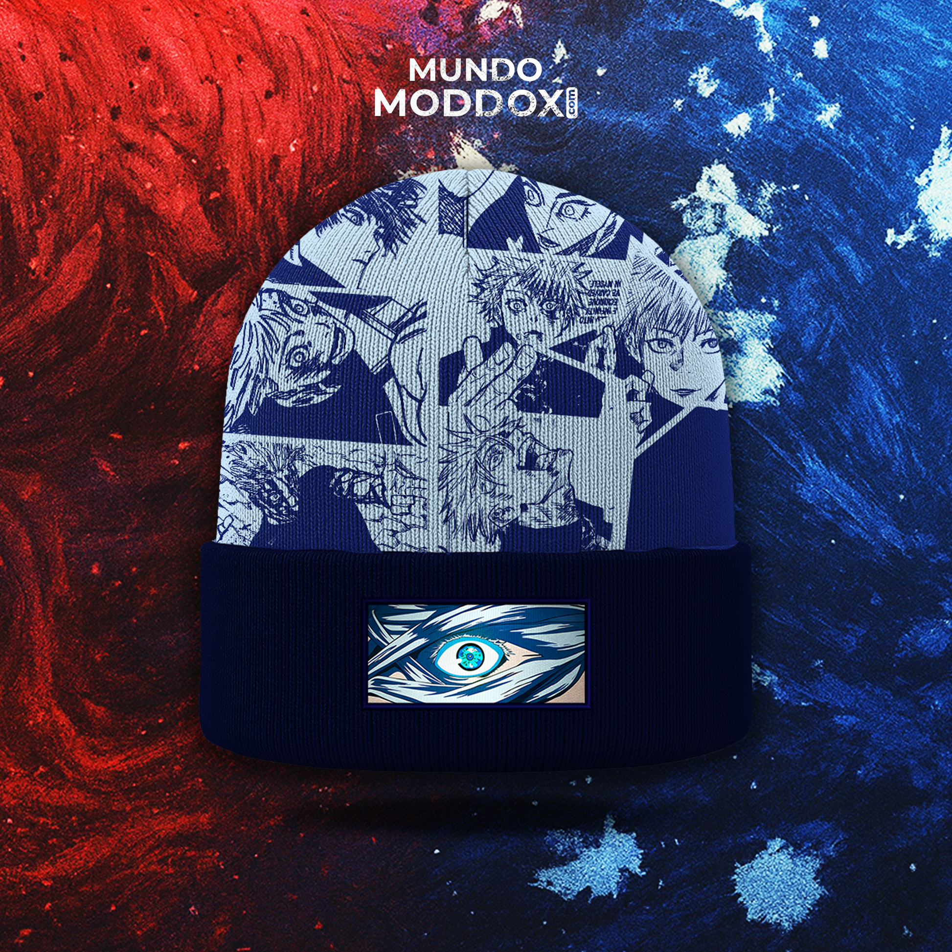Beanie azul marino con collage de paneles y parche del icónico Six Eyes. Tejido cálido, doblez ancho y ajuste unisex. Para días fríos y outfits que miran más allá del límite. 💙👁️🧢