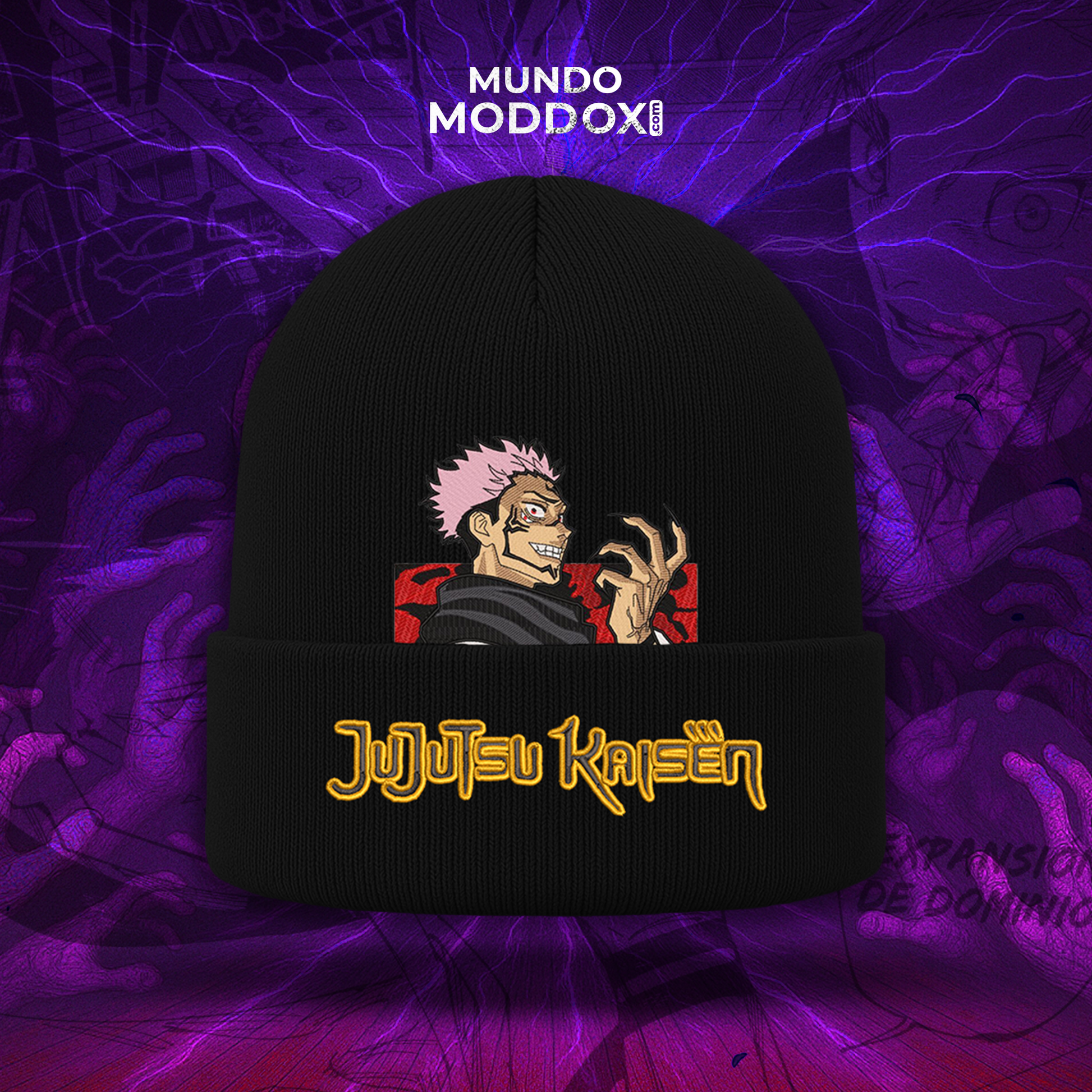 Parche del Rey de las Maldiciones. Tejido suave con doblez negro, unisex y abrigador. Para quienes llevan el dominio a todas partes. 🔥🕸️👹