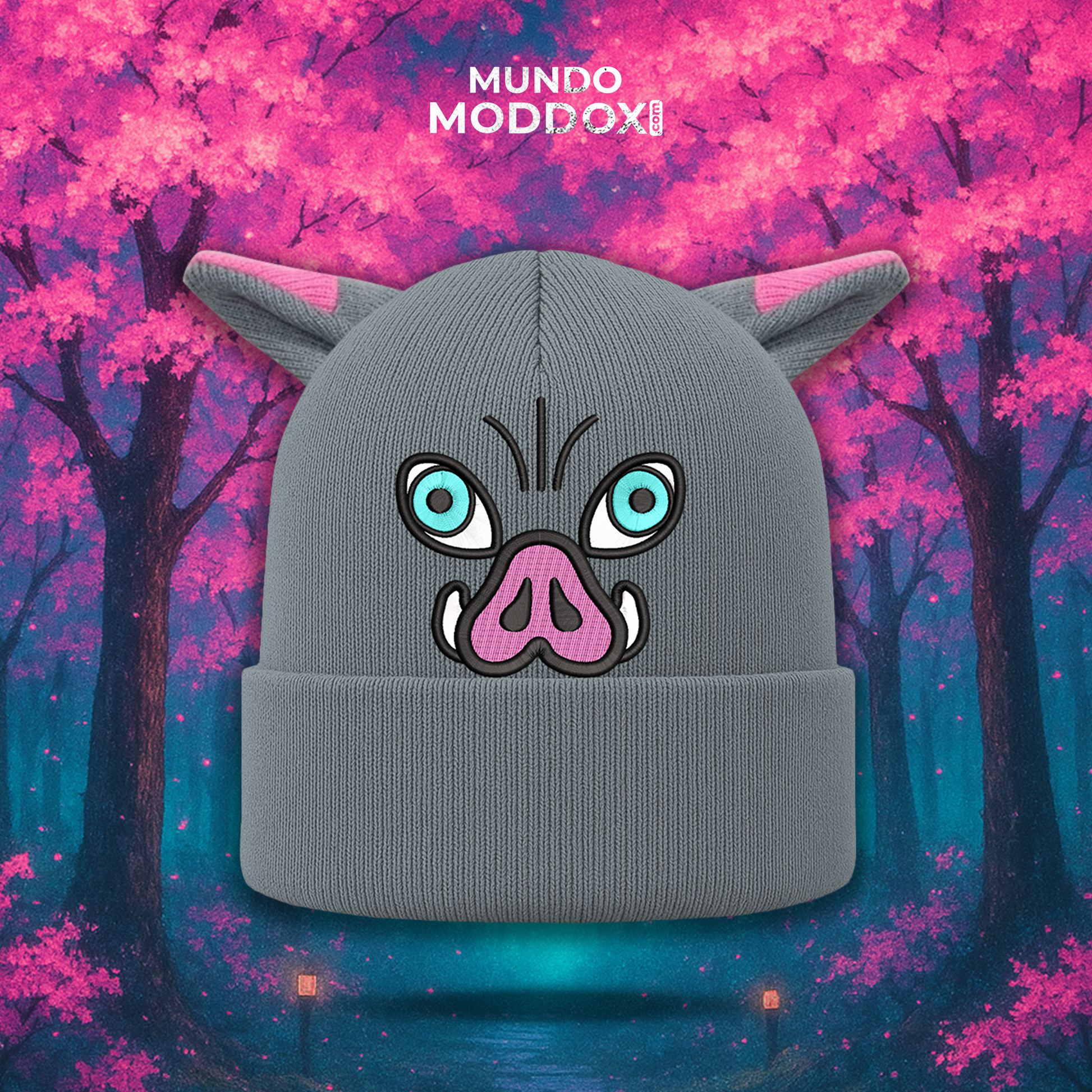Deja salir tu lado salvaje con Inosuke 🐗💥. Beanie gris tejido en lana con orejitas y bordado del icónico jabalí de Kimetsu no Yaiba. Abrigador, cómodo y unisex, ideal para climas fríos ❄️ y perfecto para destacar en cualquier ocasión con un look anime único.