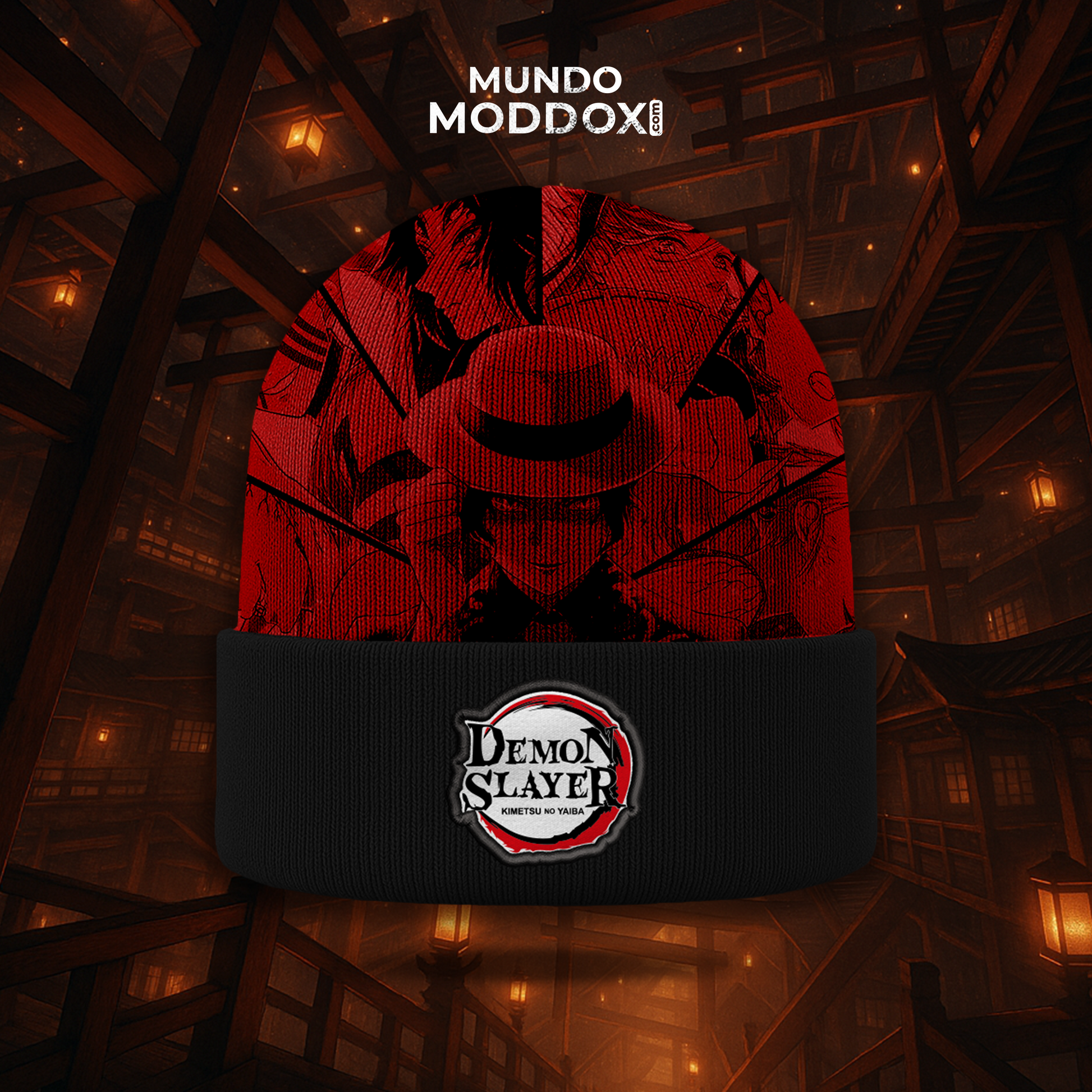 Libera la oscuridad con el líder de los demonios 🎩👹. Beanie tejido en lana rojo con negro, estampado con la silueta de Muzan Kibutsuji de Kimetsu no Yaiba. Unisex, abrigador y cómodo, ideal para climas fríos ❄️ y para quienes buscan un accesorio anime con un diseño imponente y siniestro.