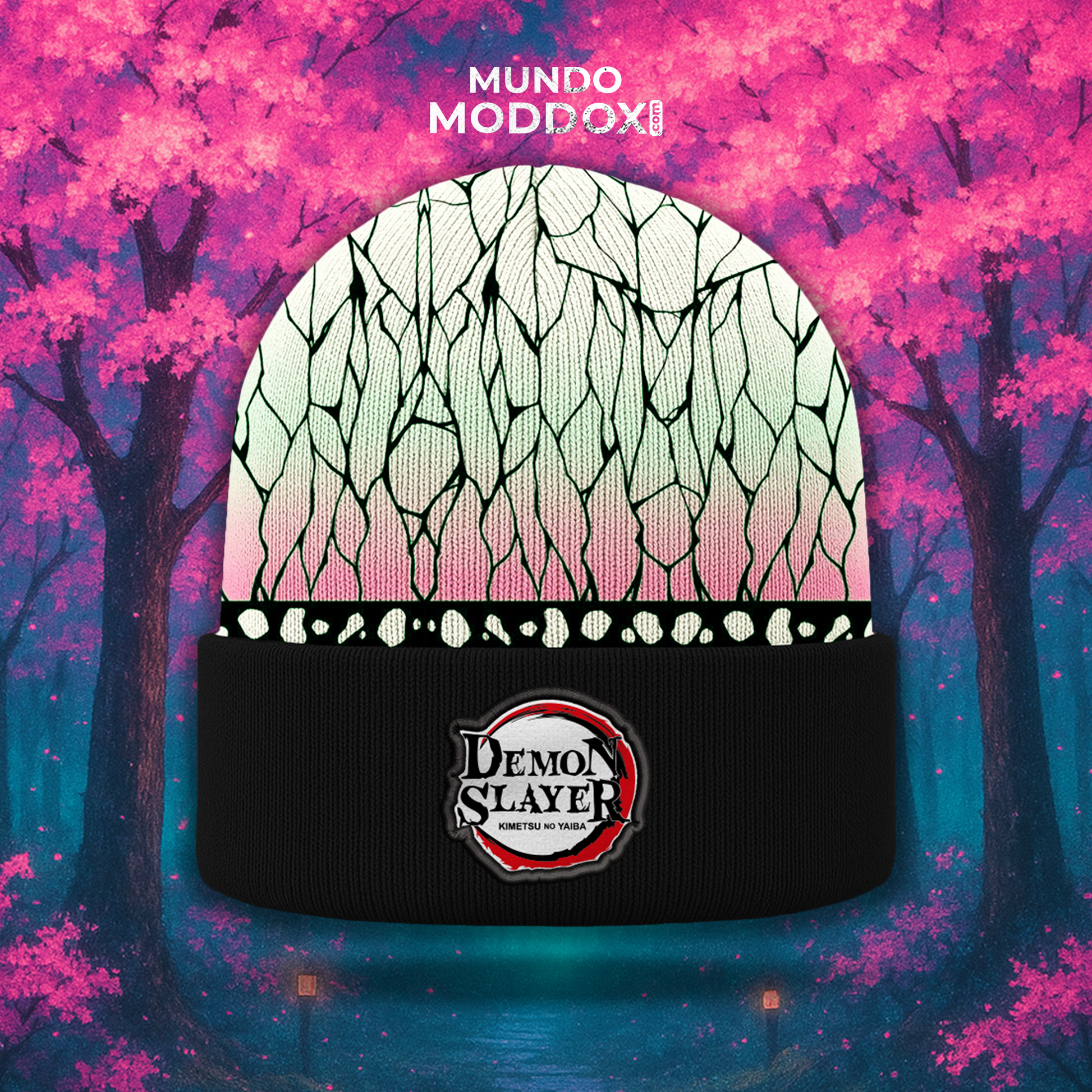 Lleva la elegancia de la Hashira de los Insectos 🦋🌸. Beanie tejido en lana con degradado rosa a verde y patrón de grietas inspirado en Shinobu Kocho de Kimetsu no Yaiba. Suave, abrigador y unisex, ideal para climas fríos ❄️ y perfecto para quienes aman los detalles delicados del anime.