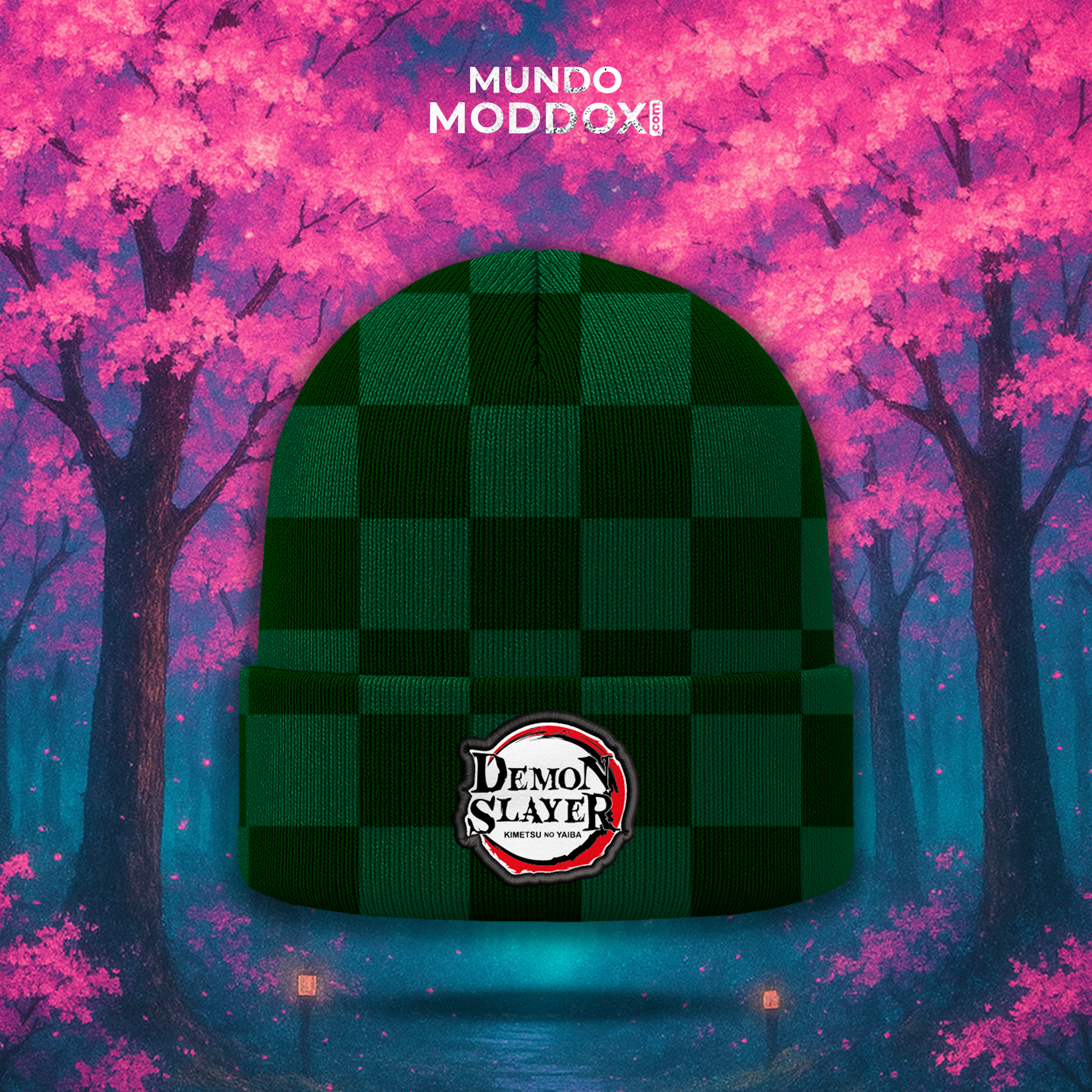 Protege tu energía como Tanjiro 🍃🗡️. Beanie tejido en lana con patrón verde a cuadros, inspirado en la icónica capa del protagonista de Kimetsu no Yaiba. Abrigador, cómodo y unisex, ideal para climas fríos ❄️ y para darle un toque anime a tu outfit diario. ✨