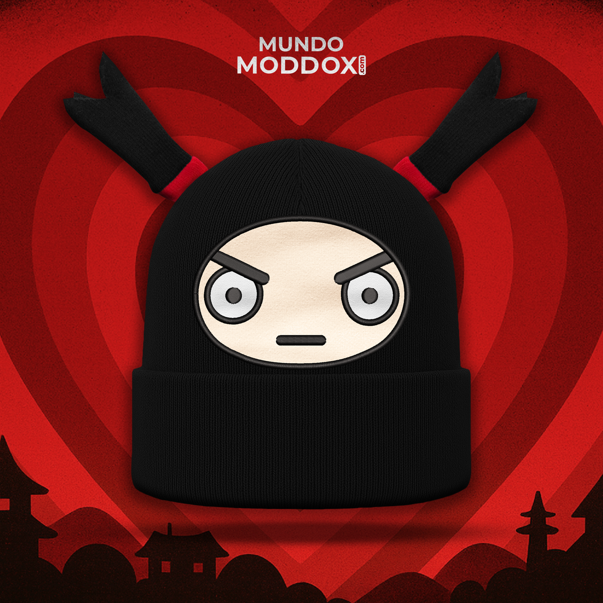 El silencioso ninja amante de Pucca ahora en versión beanie ⚔️🖤. Este gorro negro con detalles rojos y bordado minimalista refleja la esencia de Garu, ideal para fans de la serie.