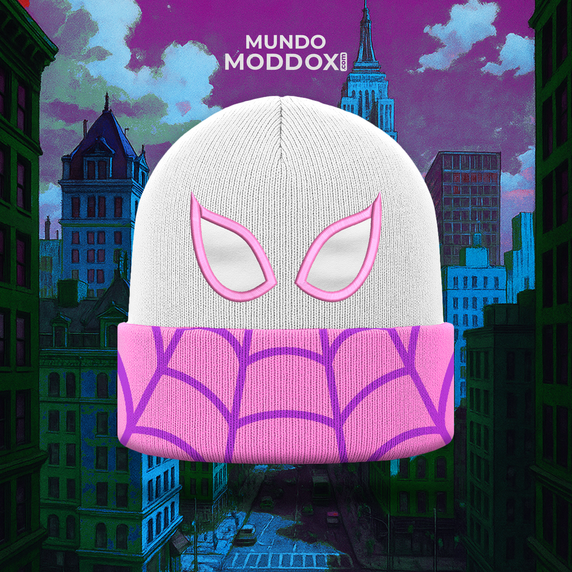 Rosa vibrante, telaraña rosa y los icónicos ojos rosados. Lleva contigo el espíritu de la trepamuros con este gorro cómodo y lleno de poder arácnido.