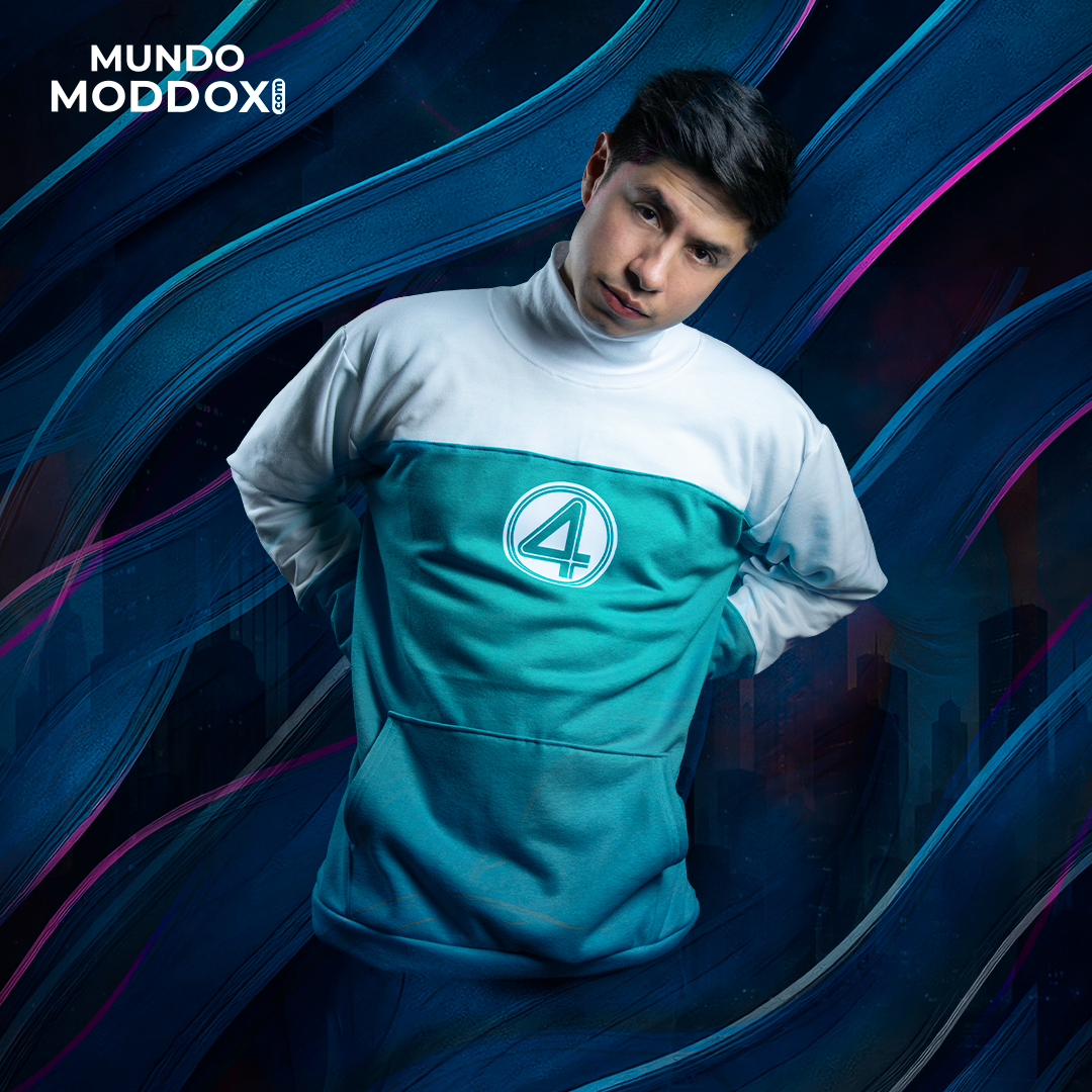 Versión clásica con cuello alto completo en azul intenso. Minimalismo puro con el icónico logo del “4” al centro. La elección de Mr. Fantástico. 🧠🔷