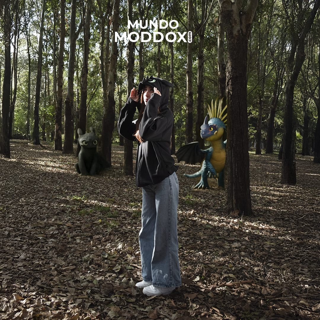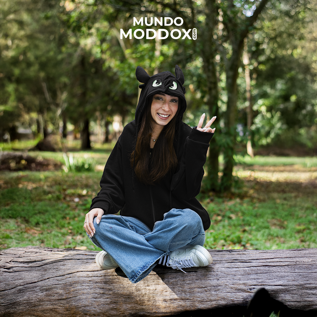 Sumérgete en un mundo de fantasía con nuestra hoodie inspirada en Chimuelo: capucha con ojos bordados y brillantes en la oscuridad, espinas dorsales suaves y cuerpo en felpa de algodón premium que abraza tu piel. Perfecta para cualquier fan del universo dragón. 🐉✨