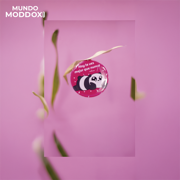 Pin metálico inspirado en Panda (Escandalosos / We Bare Bears). Fondo rosa, impresión a color y cierre de alfiler para personalizar mochilas, chamarras y totes. Ligero, brillante y coleccionable.