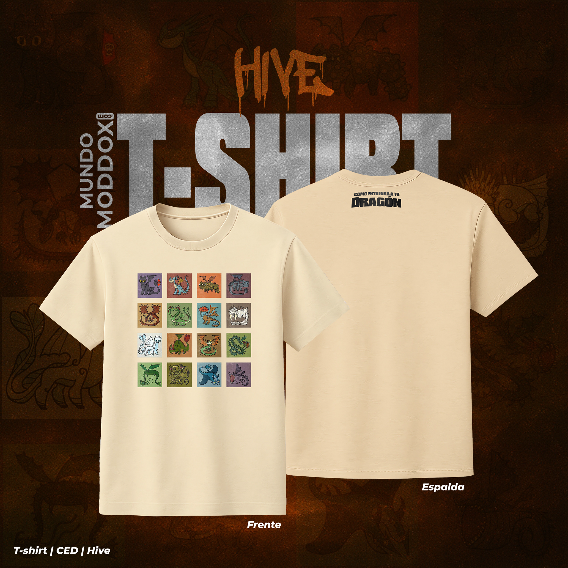🌈 Una colmena de dragones lista para rugir. Esta t-shirt reúne a múltiples especies en un diseño pixelado, colorido y vibrante. Cada recuadro representa un rincón del universo de Cómo entrenar a tu dragón, perfecta para fans que aman la diversidad y el caos adorable de este mundo. Llévalos todos contigo en un solo vistazo. 🧩🔥