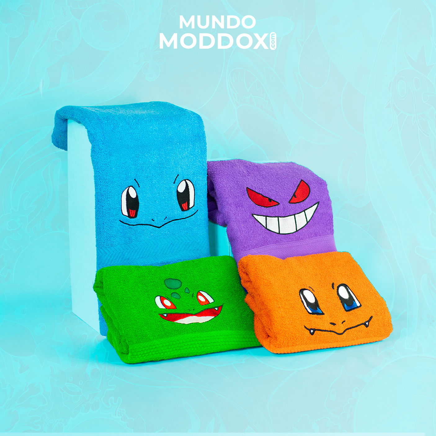 Toallas de baño y playa con bordados inspirados en la franquicia pokemon.